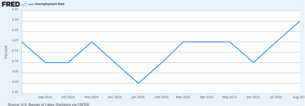 Only to show cracks over the course of Q3. Downward revisions to jobs growth were the catalyst, rising unemployment contributed, debate as to an independent Federal Reserve, and ultimately higher readings of inflation led to an unclear picture for investors. All leading to the Fed cutting interest rates for the first time since late 2024 in an effort stimulate growth and reduce unemployment. Fed Chair Powell’s concern shifted squarely from inflation to the labor market.
